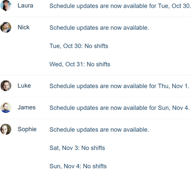 Automated shift reminders mean your employees will always know when and where they are working. Reminders can be configured by employees to be sent during specific time windows and up to 30 days in advance.