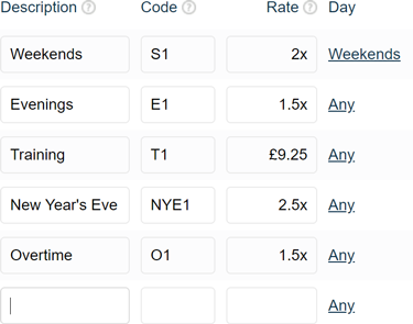 Use rules to calculate different hourly rates for employees based on their shift's day of the week, time of the day, facility and the employee's age. Rules will either override employee pay rates with a fixed hourly rate or adjust their normal hourly rate with a multiplier.