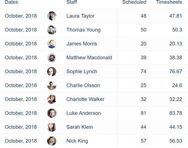 Once approved, timesheet data can be used throughout your reports, including "Schedule vs. timesheets". This report gives you an overview of the scheduled hours and expected costs compared to the actual hours worked and the real costs.
